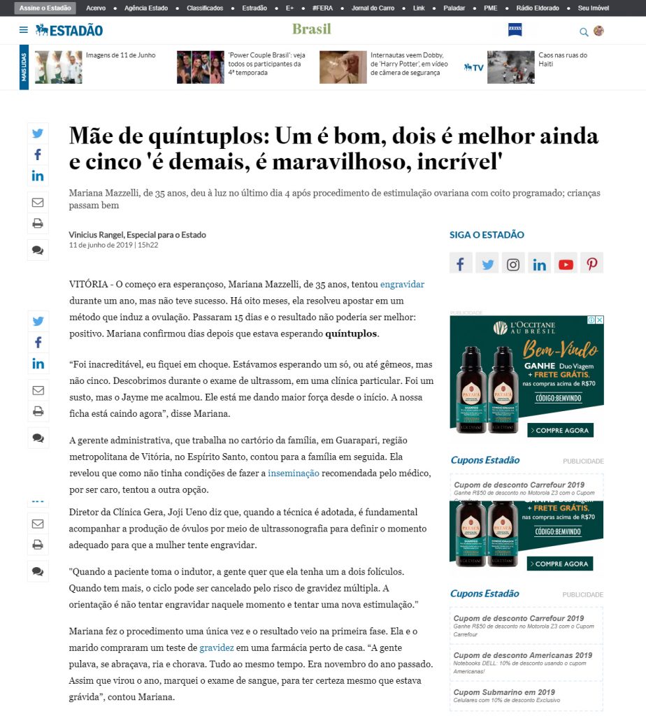 Sem categoria Portal Estadão 20 de março de 2020 Por admin Cliente – Clínica GeraFonte – Dr. Joji UenoTema da Pauta – estimulação ovariana Navegação de Post Post anteriorAnterior Revista Viva SaúdePróximo postPróximo Jornal Extra